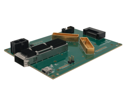 The ML4062-MCB-112-MXPM70 board is equipped with two MXPM70 connectors and has high-performance signal integrity traces from the connectors to the QSFP-DD host connector.